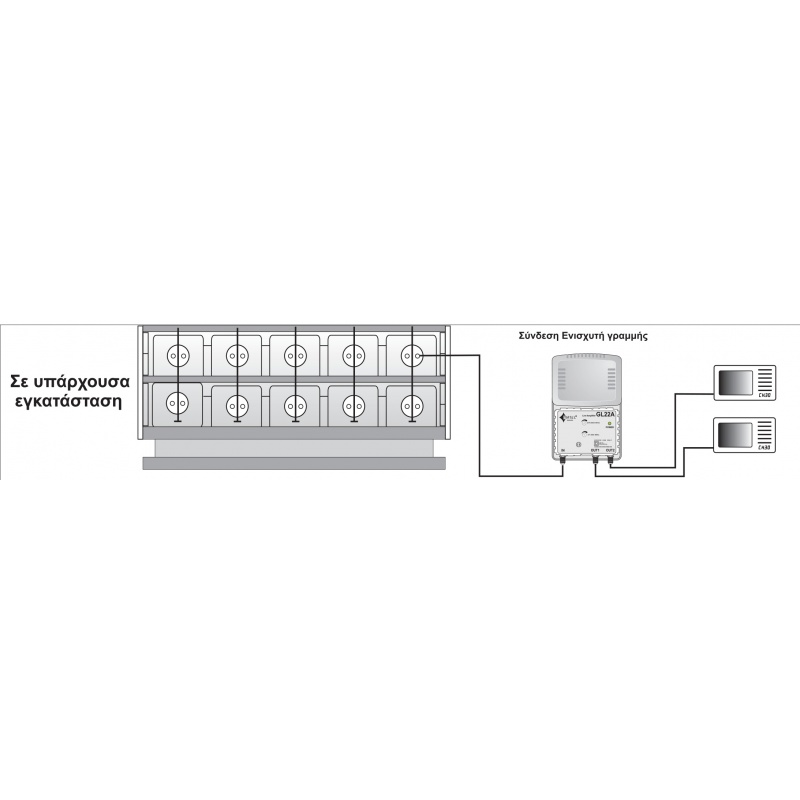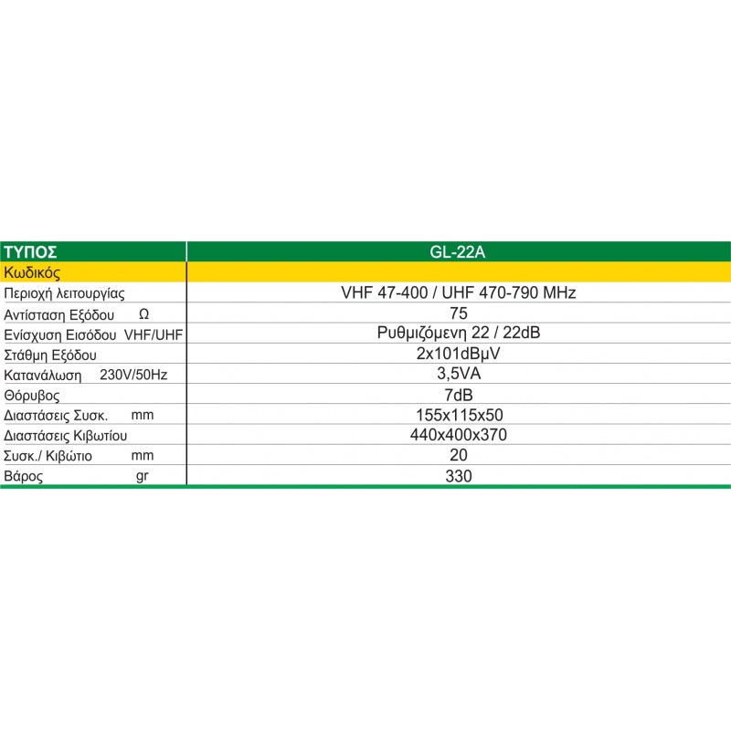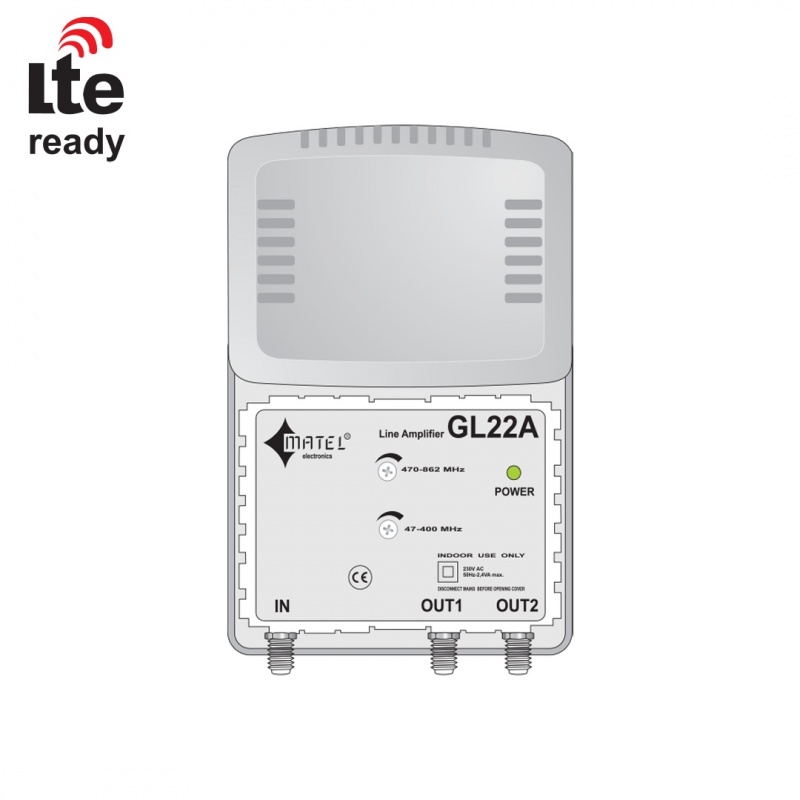 Ενισχυτής γραμμής για την διανομή του επίγειου τηλεοπτικού σήματος. Διαθέτει μία είσοδο από τους 47ΜΗΖ – 400ΜΗΖ και 470 – 790ΜΗΖ. οι συχνότητες 4G, δεν ενισχύονται.