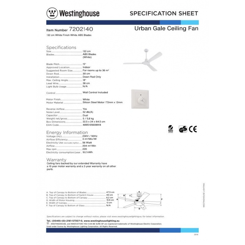 Westinghouse Ανεμιστήρας Οροφής Urban Gale 3 Πτερυγίων (72020)