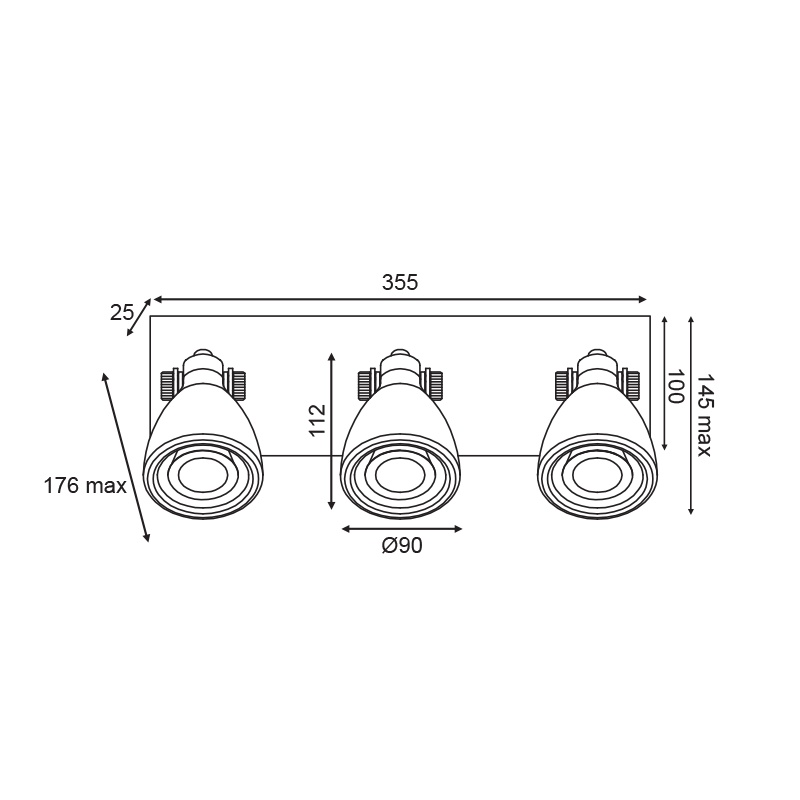 Τρίφωτο φωτιστικό οροφής - τοίχου από terrazzo και μέταλλο σε λευκό χρώμα.