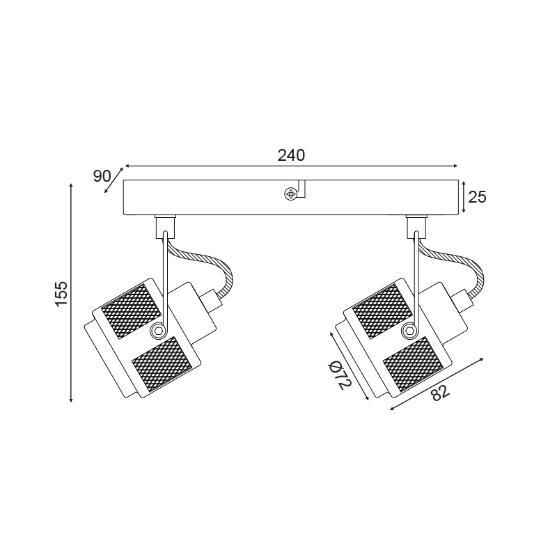 Δίφωτο μεταλλικό φωτιστικό οροφής - τοίχου σε γκρι χρώμα.