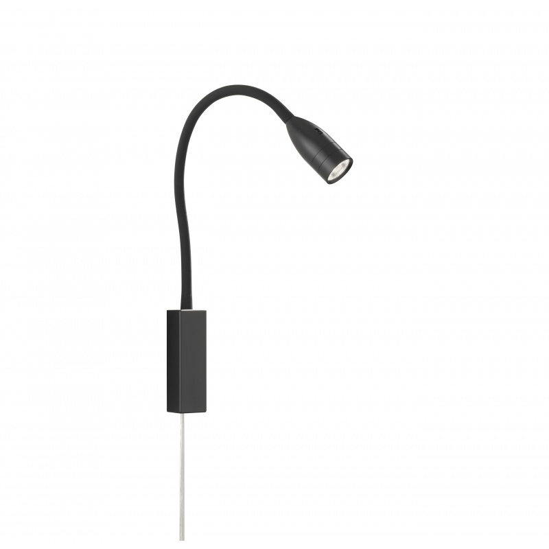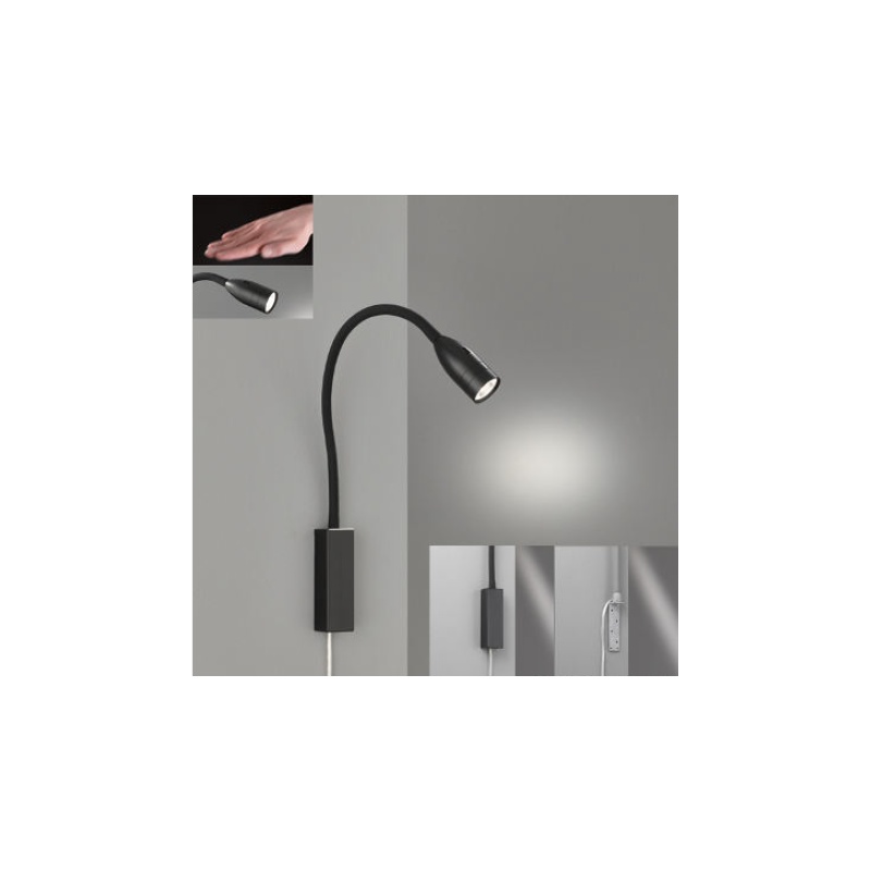 Απλίκα Σποτ, μονόφωτο φωτιστικό τοίχου, τεχνολογίας LED, σε μαύρο ματ. Διαθέτει διακόπτη και είναι ντιμαριζόμενο με κίνηση χεριού (χειρονομία).