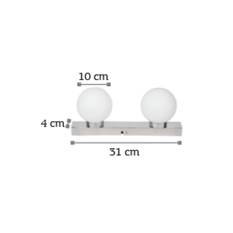 • Επιτοίχιο φωτιστικό κατασκευασμένο από μέταλλο σε χρώμιο απόχρωση και λευκή οπαλίνα