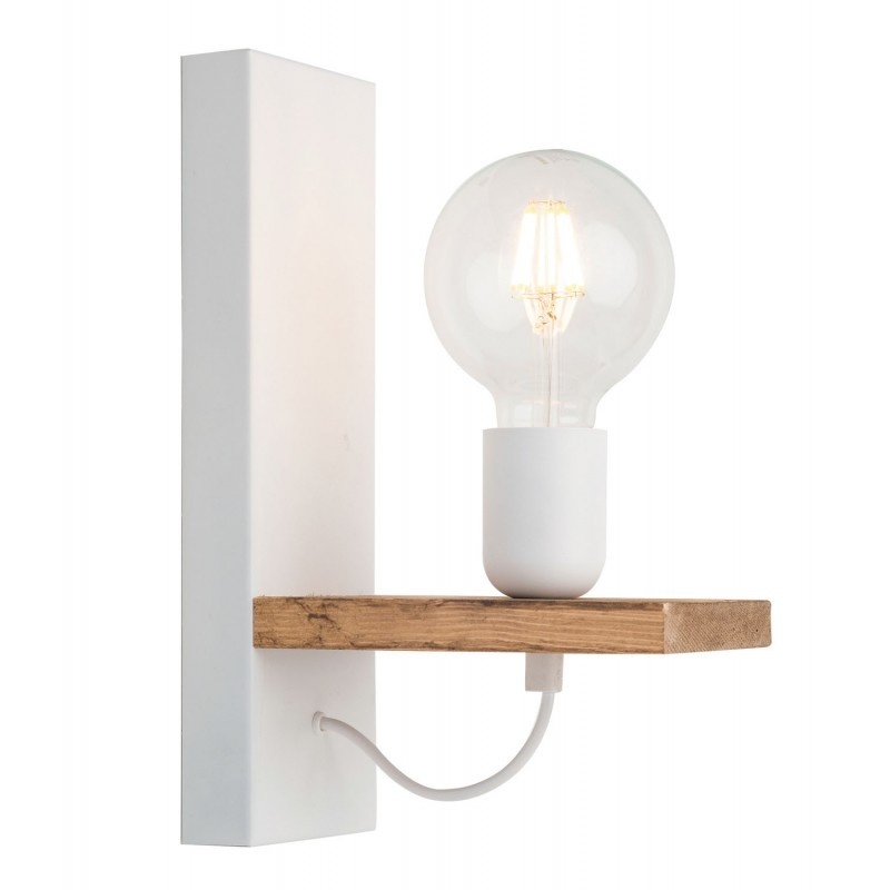 Φωτιστικό Απλίκα Ε27 σε μοντέρνα γραμμή με ξύλο σε φυσικό σκούρο χρώμα και μεταλλικά μέρη σε λευκό