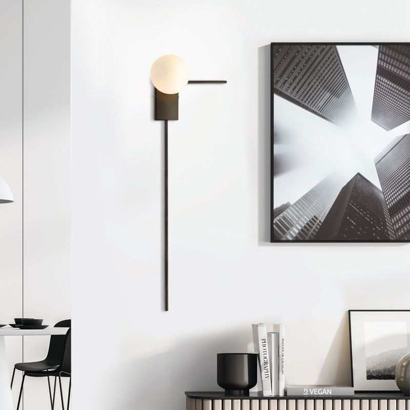 Επιτοίχιο μεταλλικό φωτιστικό σε μαύρο χρώμα και λευκό γυαλί.