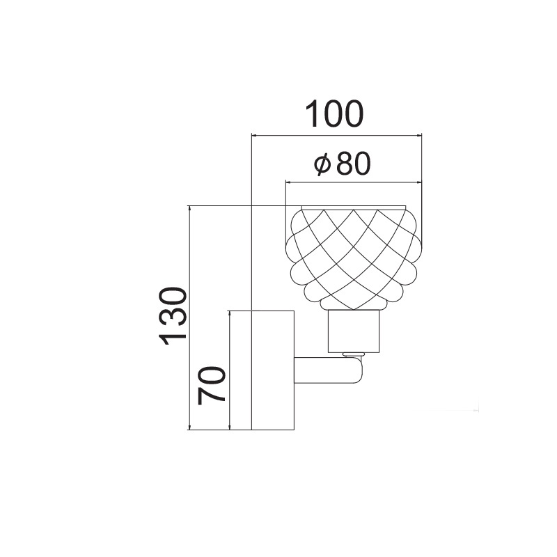 Μεταλλικό χρώμιο φωτιστικό τοίχου με διάφανο κρυσταλλιζέ γυαλί υψηλής καθαρότητας σε κυκλικό σχήμα με άνοιγμα στο κάτω μέρος.