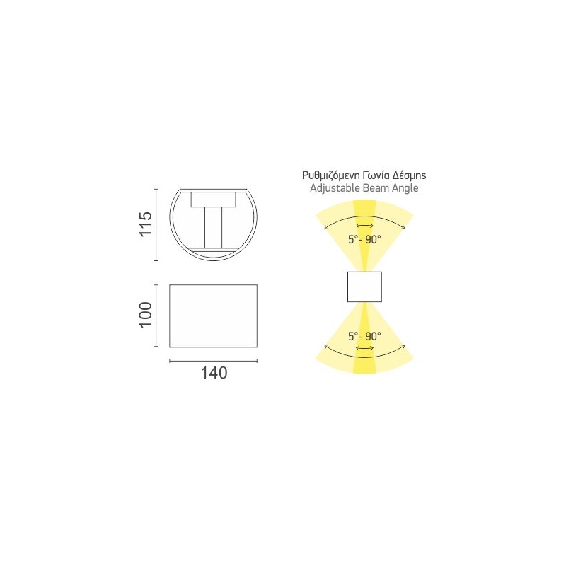 Ρυθμιζόμενη γωνία δέσμης.