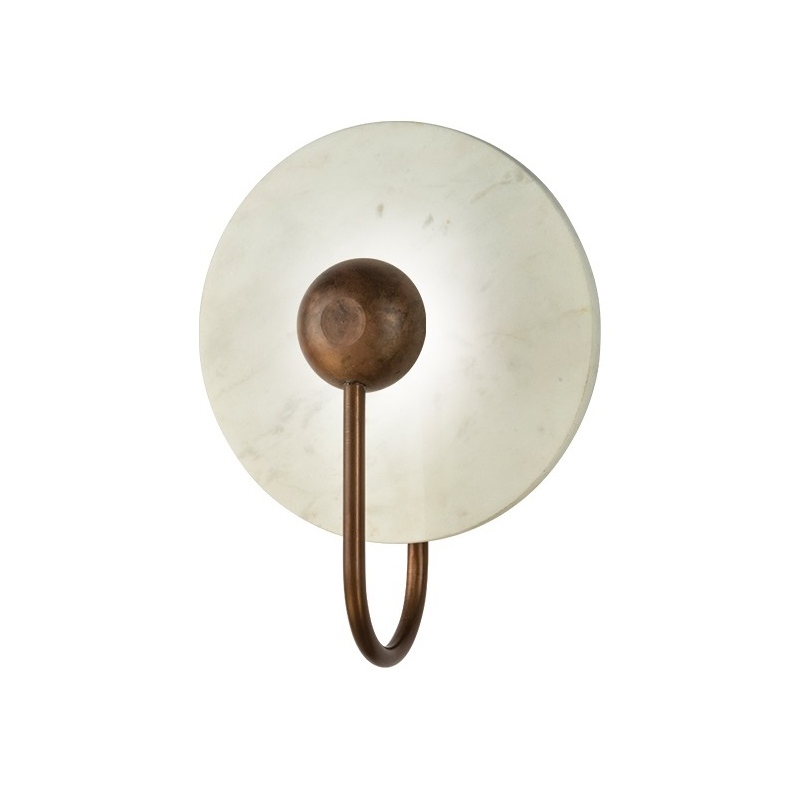 Led επιτοίχιο φωτιστικό από ατσάλι στο χρώμα του σκουριασμένου χαλκού και λευκό μάρμαρο.