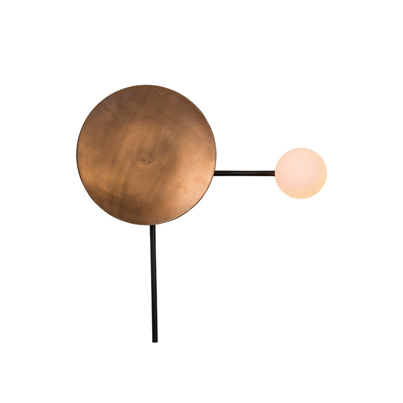 Μονόφωτο επιτοίχιο φωτιστικό από μέταλλο και γυαλί στο χρώμα του σκουριασμένου χαλκού και σε μαύρο χρώμα.