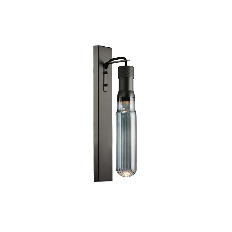 Μονόφωτο επιτοίχιο μεταλλικό φωτιστικό σε μαύρο ματ χρώμα και γυαλί σε φιμέ χρώμα.