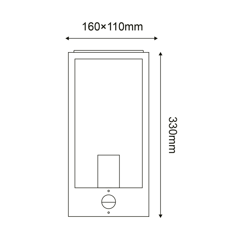 Επιτοίχιο φωτιστικό από ατσάλι και γυαλί σε μαύρο χρώμα με ανιχνευτή κίνησης (εμβέλεια 8μ, γωνία ανίχνευσης 90°, διάρκεια φωτισμού 5sec~5min).