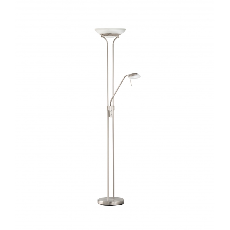 Επιδαπέδιο φωτιστικό, κινούμενο (με δυνατότητα αλλαγής θέσης φωτισμού), δίφωτο, με ενσωματωμένο LED σε νίκελ ματ και αλαβάστρινο γυαλί. Είναι ντιμαριζόμενο με διακόπτη αφής και αλλάζει θερμοκρασία χρώματος, ξεχωριστά κάθε φωτιστικό.