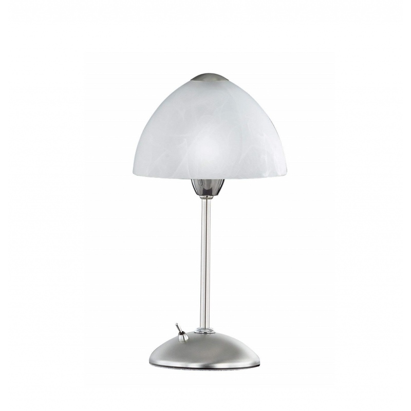 Επιτραπέζιο φωτιστικό, μονόφωτο λαμπατέρ-πορτατίφ, σε νίκελ ματ και χρώμιο με αλαβάστρινο γυαλί. Διαθέτει διακόπτη.