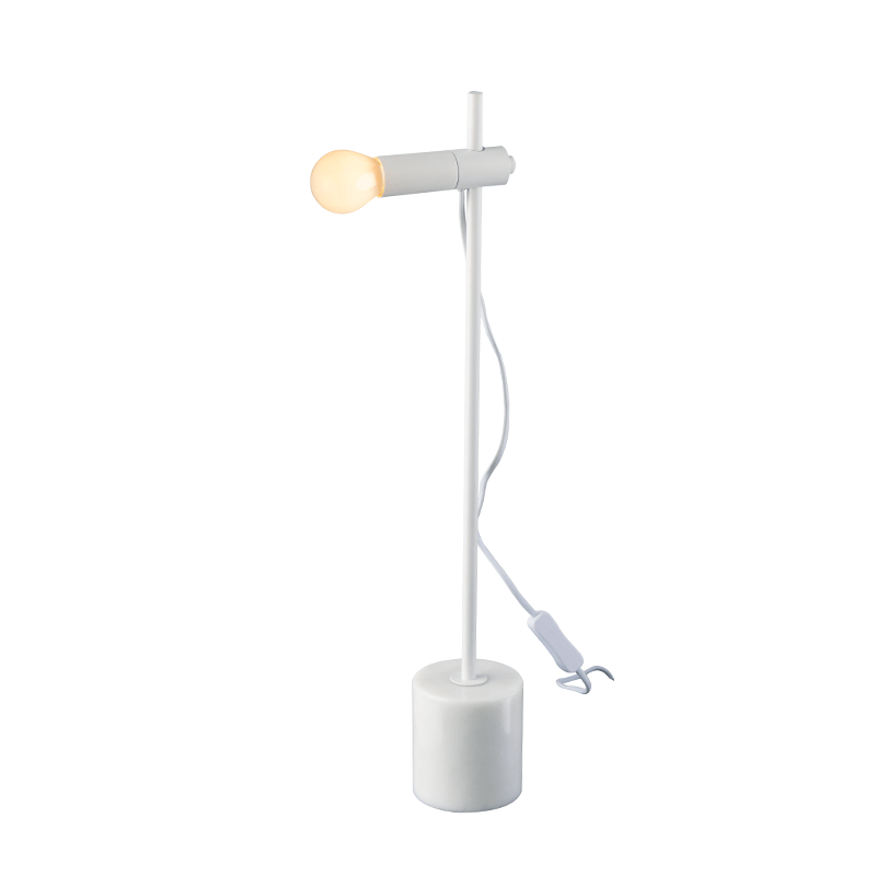 Επιτραπέζιο μεταλλικό φωτιστικό σε λευκό χρώμα και μαρμάρινη βάση.