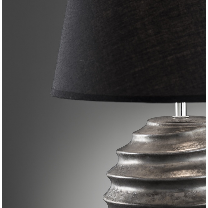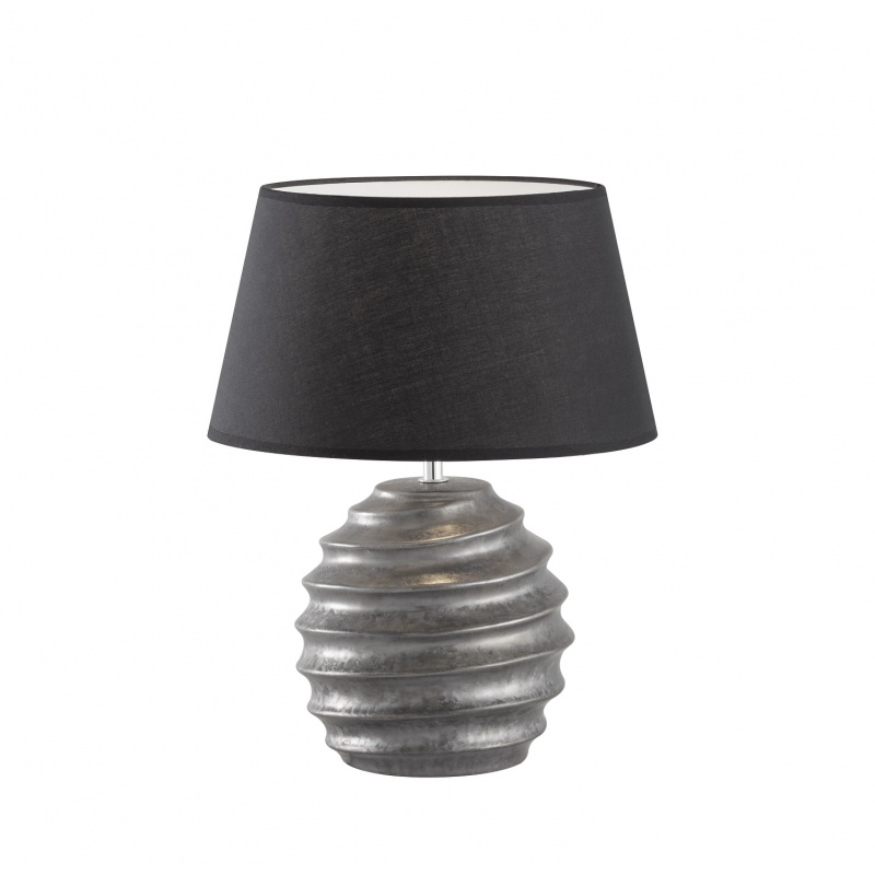 Επιτραπέζιο Φωτιστικό, μονόφωτο, κεραμικό σε γκρι και υφασμάτινο μαύρο καπέλο. Διαθέτει διακόπτη.