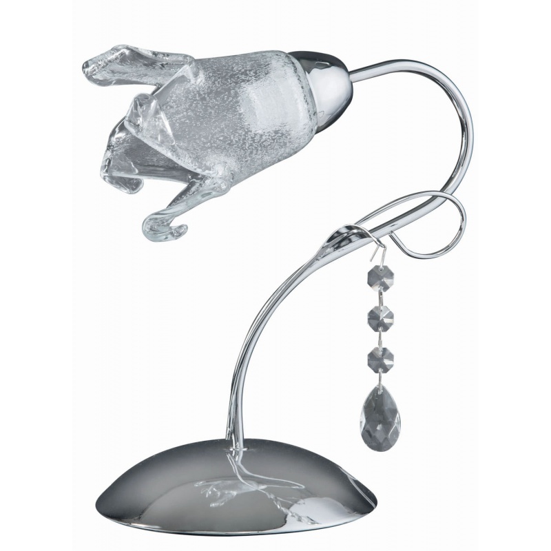 Φωτιστικό πορτατίφ σε κλασική γραμμή από μέταλλο σε βάση χρώματος χρώμιο με λευκό γυαλί και διακοσμητικό κρυσταλλάκι Ε14 Φ24