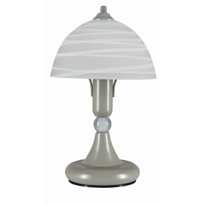 Φωτιστικό πορτατίφ σε κλασική γραμμή με μεταλλική βάση σε χρώμα νίκελ με διακοσμητική μπίλια και λευκό γυαλί Ε14 Φ18