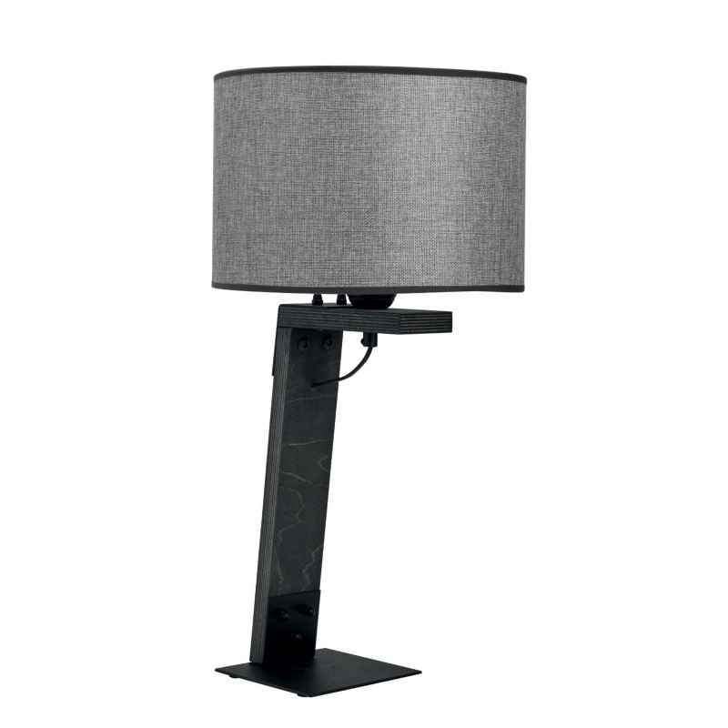 Επιτραπέζια λάμπα 1φ Ε27 σε μοντέρνα γραμμή, ξύλο σημύδα σε γκρι σκούρο χρώμα, μεταλλικά μέρη σε χρώμα μαύρο και αμπαζούρ ύφασμα σε χρώμα γκρι Φ30