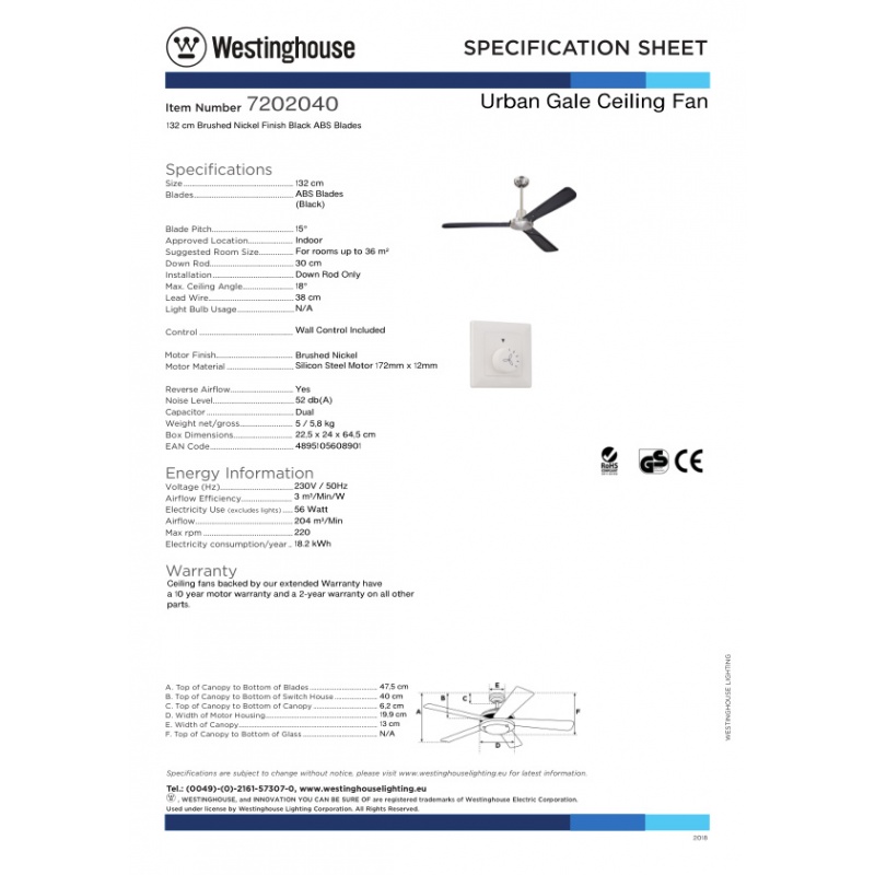 Westinghouse Ανεμιστήρας Οροφής Urban Gale 3 Πτερυγίων (72021)
