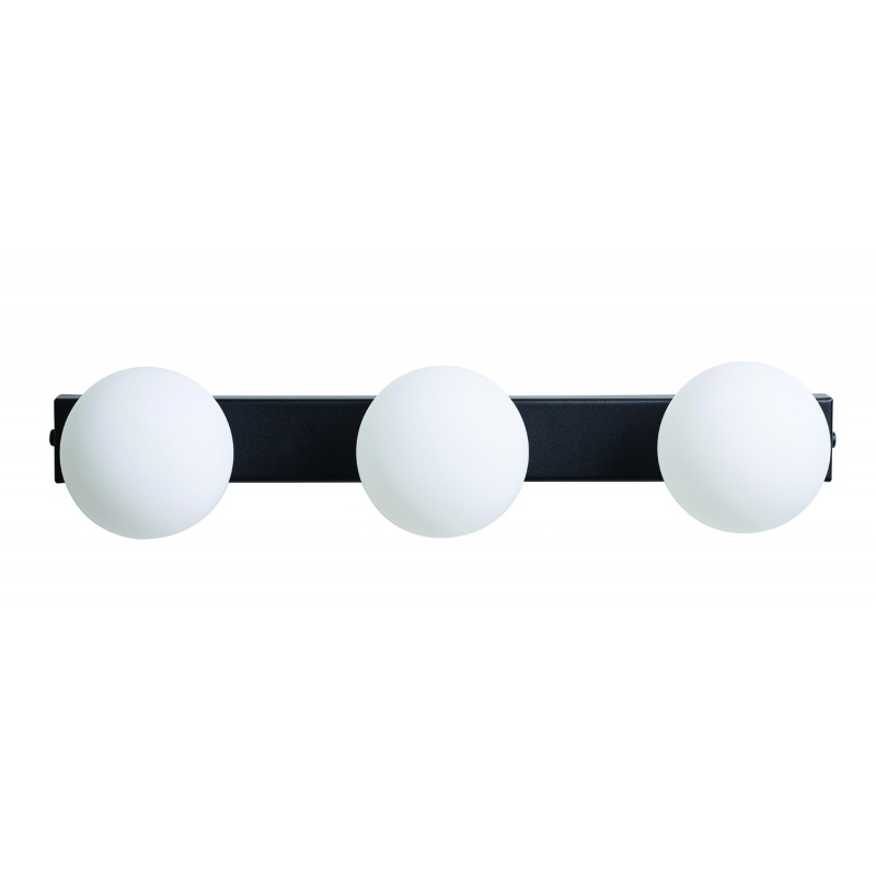 Φωτιστικό απλίκα ράγα 3φωτη G9 σε μοντέρνα γραμμή από μέταλλο σε χρώμα μαύρο ματ και γυαλί οπάλ Φ10.