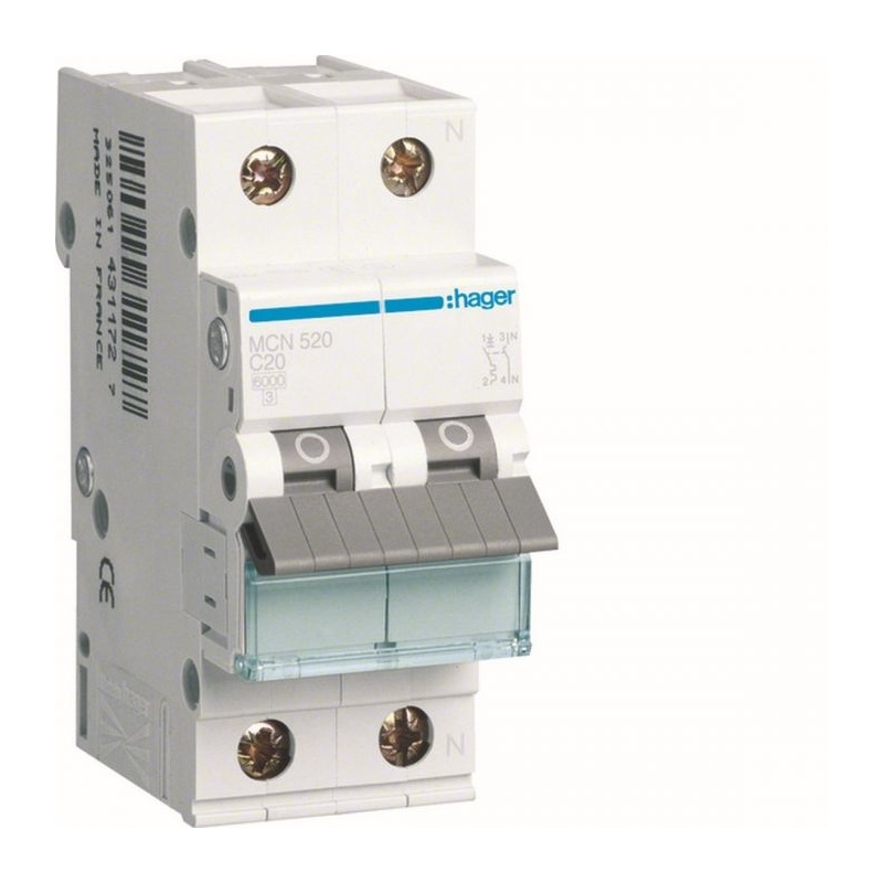 Hager Αυτόματη Ασφάλεια 20Α Καμπύλης C 6KA 2P (MCN220)