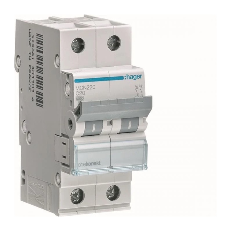 Hager Αυτόματη Ασφάλεια 20Α Καμπύλης C 6KA 1P+N 2 Στοιχείων (MCN520)