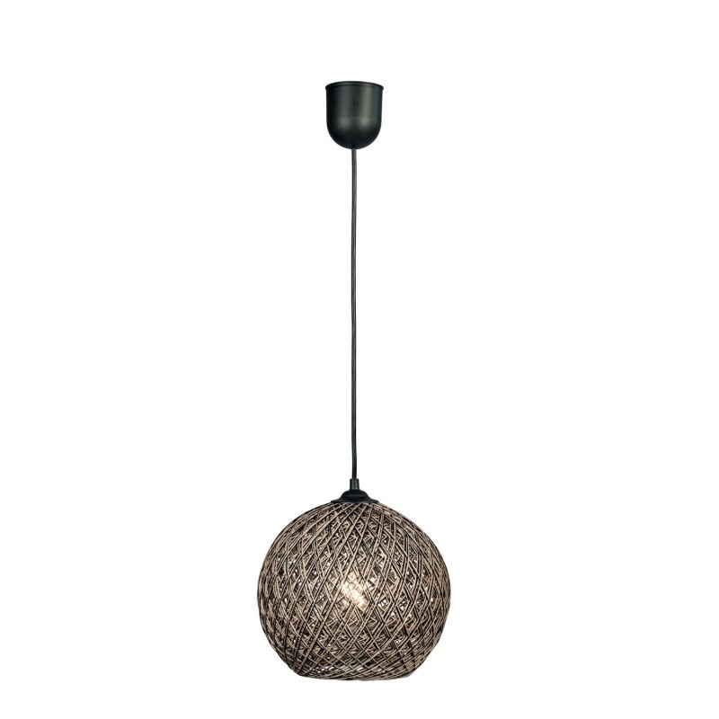 Φωτιστικό μονόφωτο μπάλα από σχοινί σε χρώμα φυσικό με μαύρο Ε27 Φ20