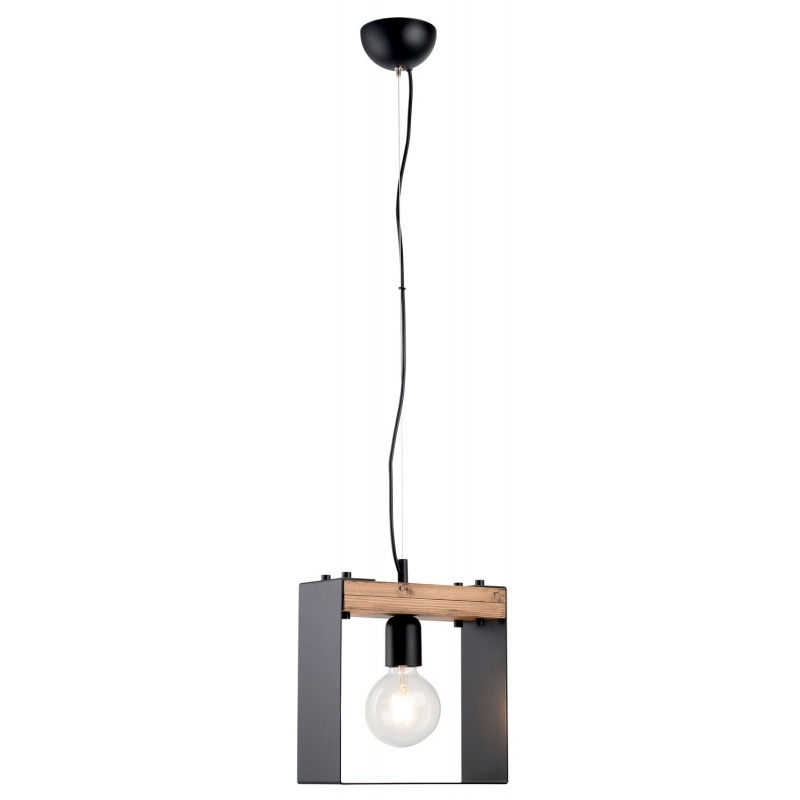 Φωτιστικό μονόφωτο σε μοντέρνα γραμμή με ξύλο σε φυσικό χρώμα και μεταλλικά μέρη σε μαύρο Ε27 Φ25
