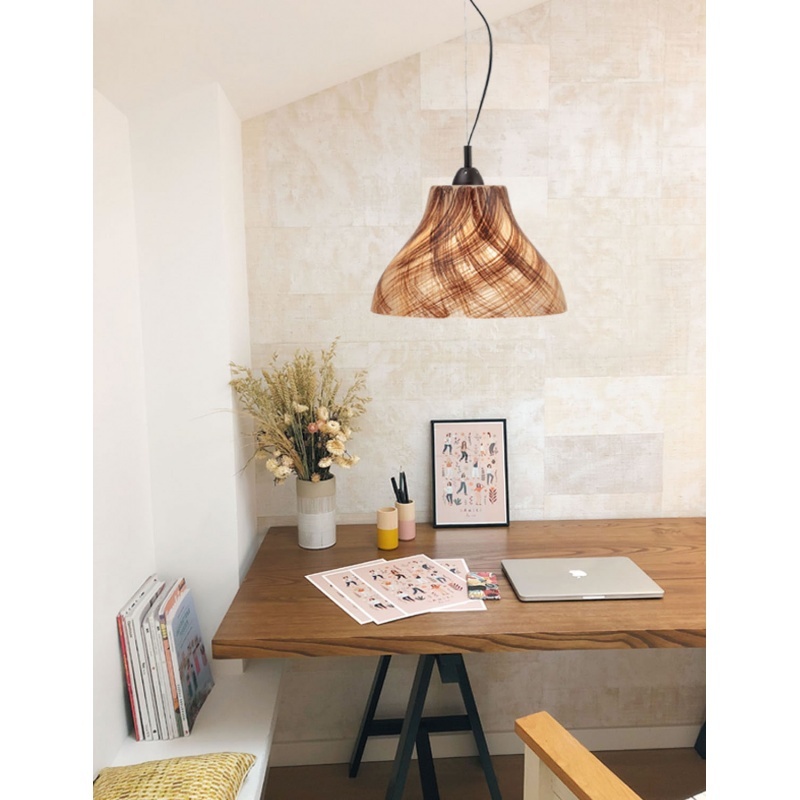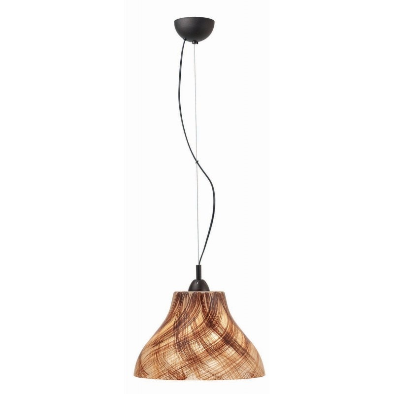 Φωτιστικό μονόφωτο γυάλινο σε μοντέρνα γραμμή σε χρώμα μελί με καφέ πινελιές και συρματόσχοινο σκουριά Ε27 Φ32