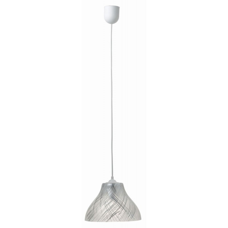Φωτιστικό μονόφωτο γυάλινο σε μοντέρνα γραμμή σε χρώμα λευκό με ασημί πινελιές και ανάρτηση καλώδιο λευκό Ε27 Φ24