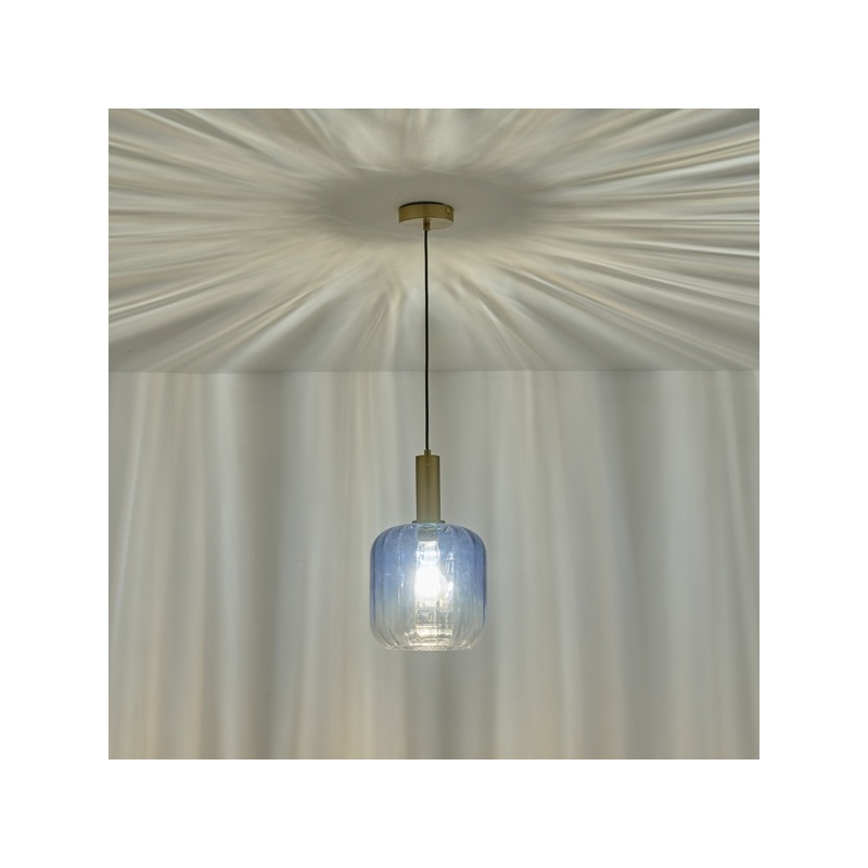Arte Illumina Φωτιστικό Κρεμαστό με ΑΝΑΓΛΥΦΟ Γυαλί ΜΠΛΕ 1XΕ27 15W 200X210mmX160cm OMBRE (144-24086)