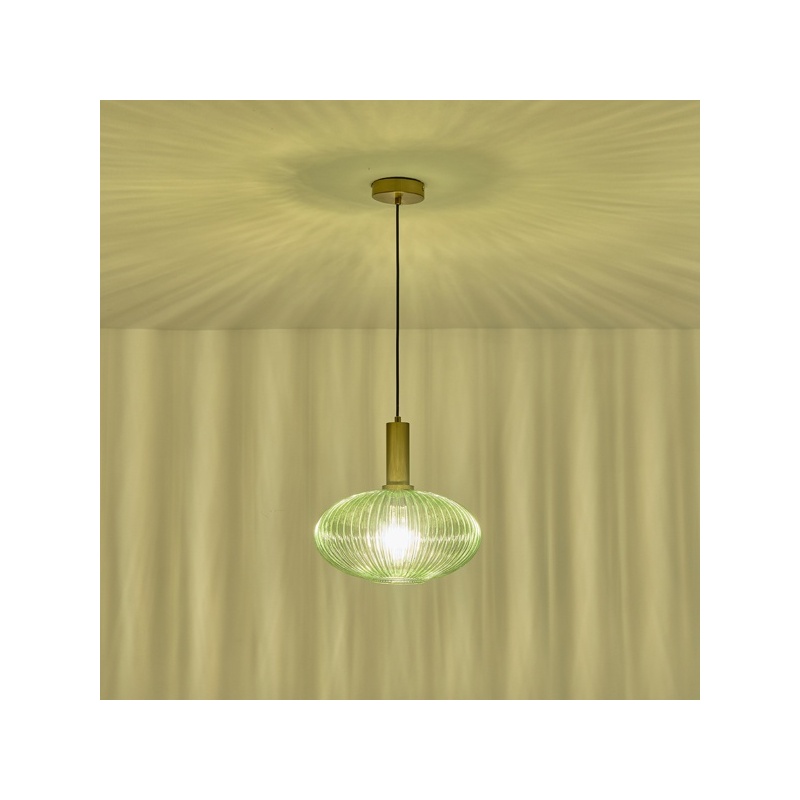 Arte Illumina Φωτιστικό Κρεμαστό με ΑΝΑΓΛΥΦΟ Γυαλί Πράσινο 1XΕ27 Max 15W Φ300X171X1200mm TOPAZ (144-24081)