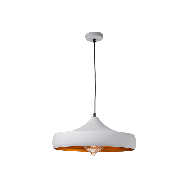 Μεταλλικό μονόφωτο κρεμαστό φωτιστικό σε λευκό χρώμα και χρυσό στο εσωτερικό του.