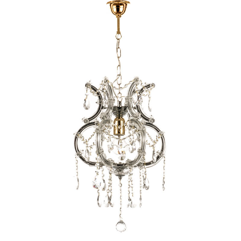 Μονόφωτο κρεμαστό γυάλινο φωτιστικό στο χρώμα του χρυσού, διακοσμημένο με κρύσταλλα.