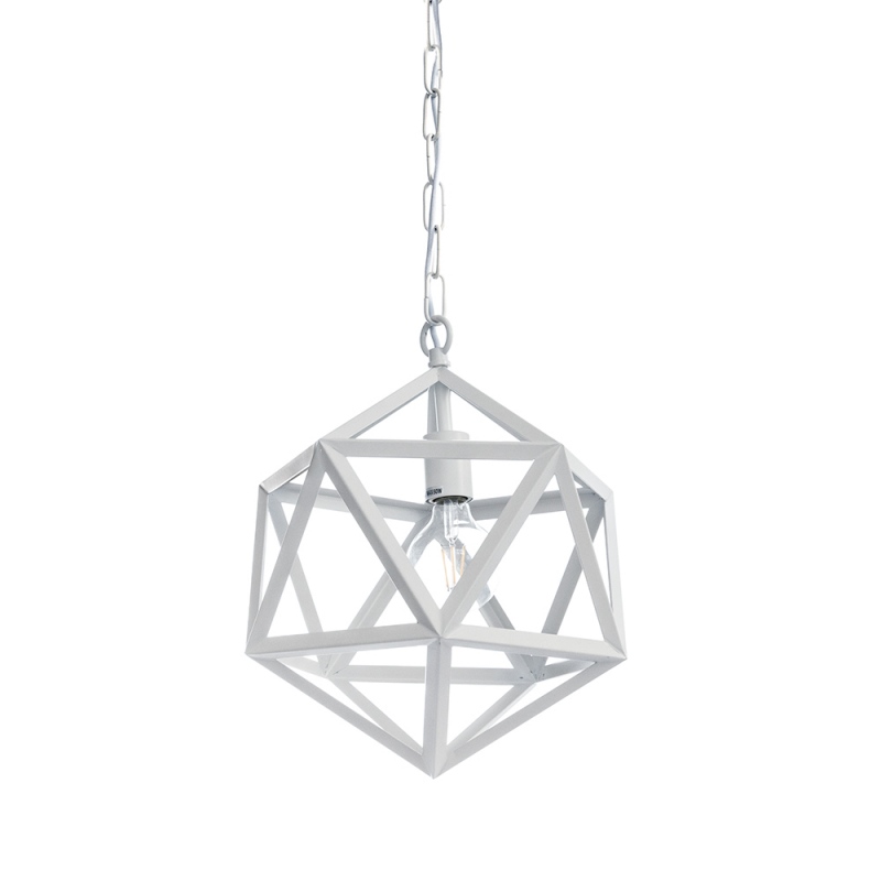 Μονόφωτο κρεμαστό φωτιστικό από μέταλλο σε λευκό χρώμα.