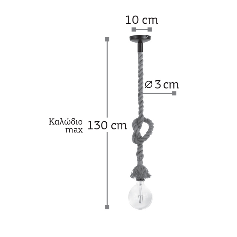 Μονόφωτο κρεμαστό φωτιστικό από σχοινί σε μαύρο χρώμα.