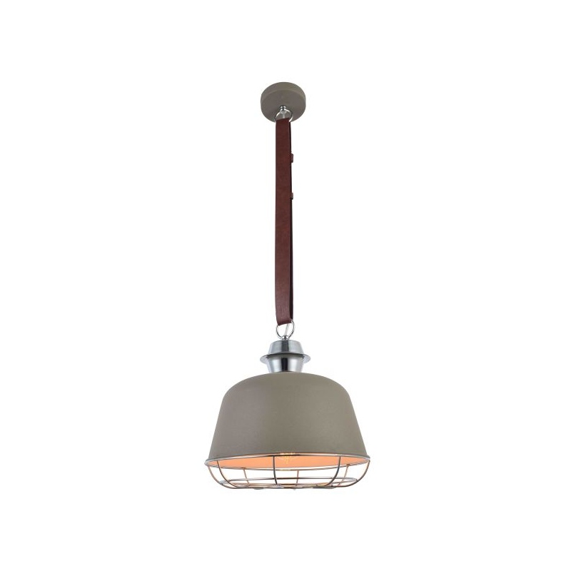 Μεταλλικό κρεμαστό μονόφωτο φωτιστικό σε γκρι χρώμα.