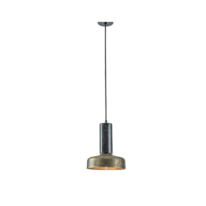 Μονόφωτο κρεμαστό φωτιστικό από ατσάλι σε μπρονζέ χρώμα και μαύρο μάρμαρο.