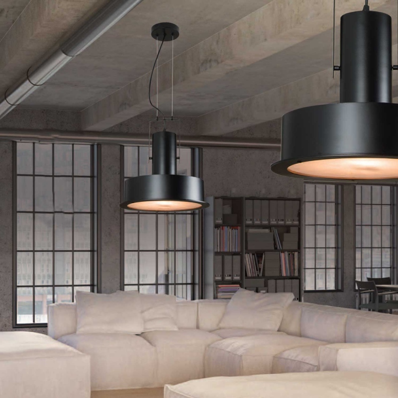 Μονόφωτο κρεμαστό μεταλλικό φωτιστικό σε μαύρο ματ χρώμα.