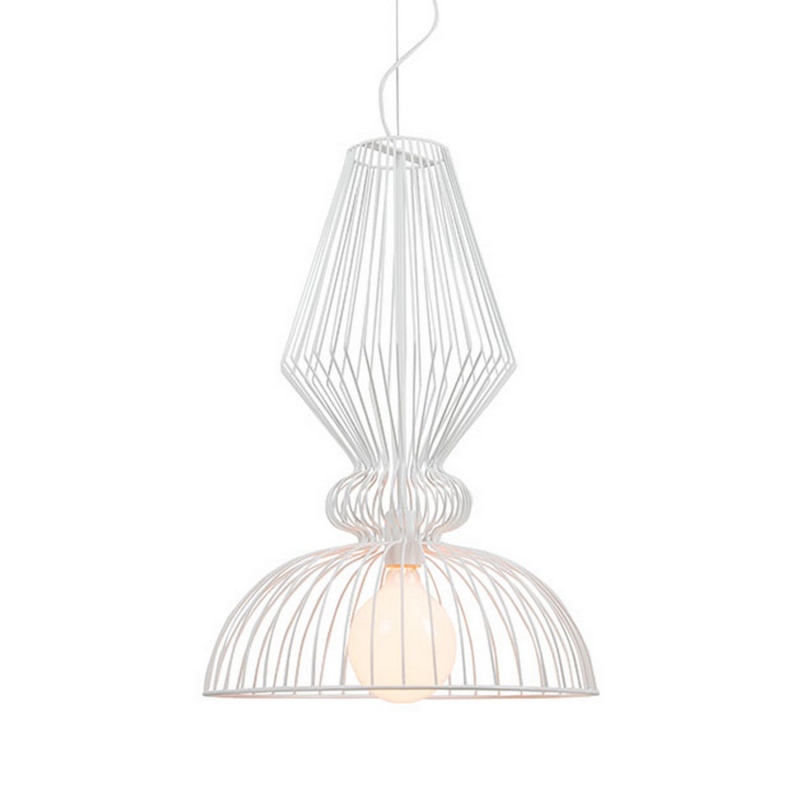 Μονόφωτο κρεμαστό μεταλλικό φωτιστικό σε λευκό χρώμα.