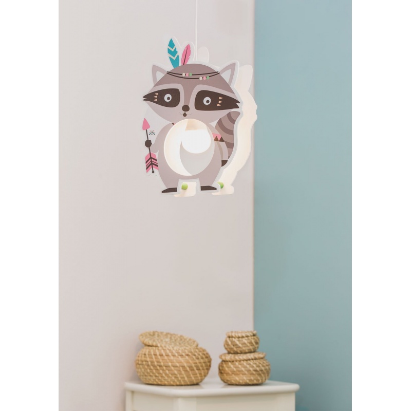 Κρεμαστό Φωτιστικό Οροφής Little Indians Waschbär OskarΤο κρεμαστό φωτιστικό "Little Indians" δημιουργεί υπέροχο φωτισμό. Το μικρό ρακούν ζει μαζί με τους άλλους Ινδιάνους φίλους του σε μια φυλή, με στόχο να φωτίσει τα δωμάτια των παιδιών. Με το χαριτωμένο μοτίβο και τα χρώματα που ταιριάζουν, το φωτιστικό γίνεται πραγματικά εντυπωσιακό.Χειροποίητο-Κατασκευάζεται με αγάπη στη Γερμανία.