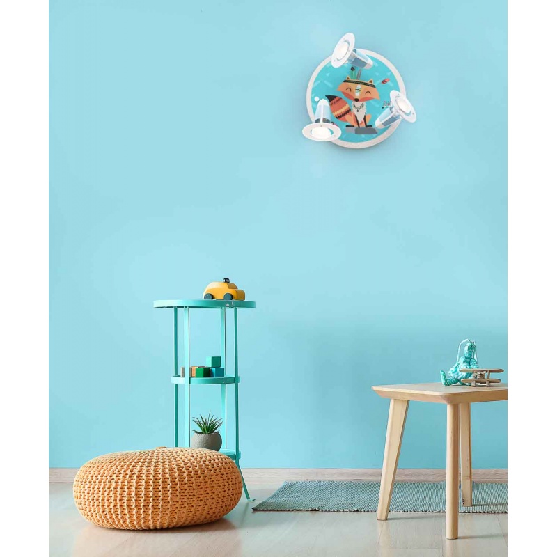 Φωτιστικό Τοίχου-Οροφής Αλεπού Little Indians Το φωτιστικό "Little Indians" δημιουργεί υπέροχο φωτισμό. Η μικρή αλεπού ζει μαζί με τους άλλους Ινδιάνους φίλους του σε μια φυλή, με στόχο να φωτίσει τα δωμάτια των παιδιών. Με το χαριτωμένο μοτίβο και τα χρώματα που ταιριάζουν, το φωτιστικό γίνεται πραγματικά εντυπωσιακό. Τα σποτ μετακινούνται. Κατασκευάζεται με αγάπη στη Γερμανία από φυσικό ξύλο-Χειροποίητο.