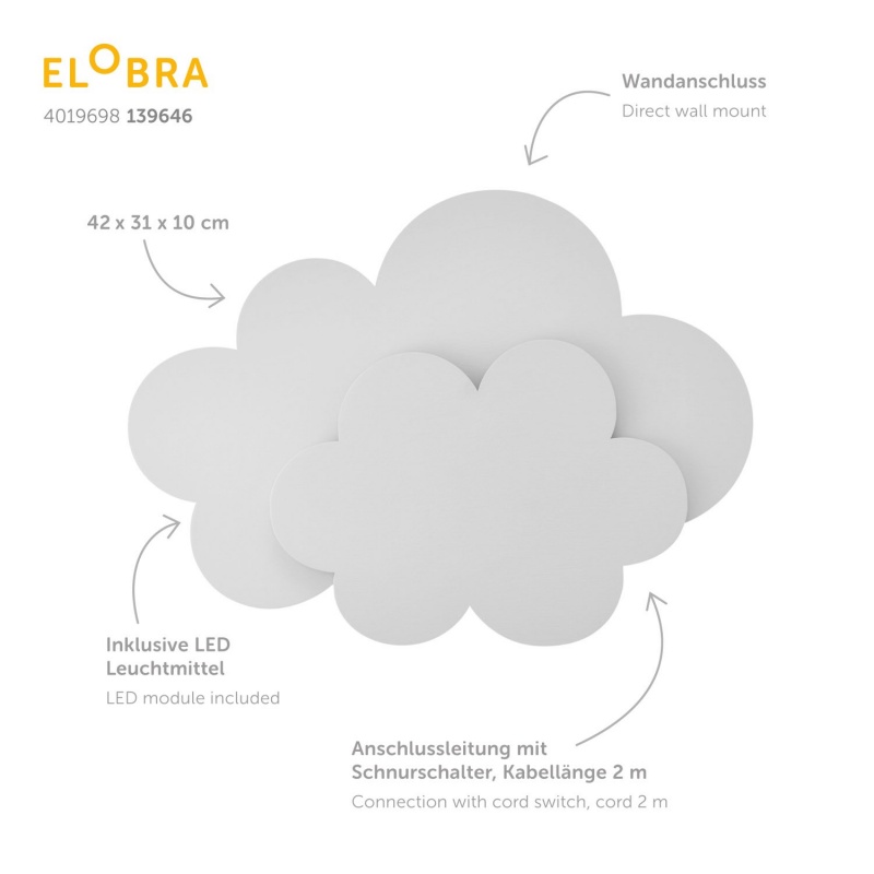 Elobra Led Παιδικό Φωτιστικό Τοίχου Σύννεφο Λευκό Cloud Wölkchen (139646)