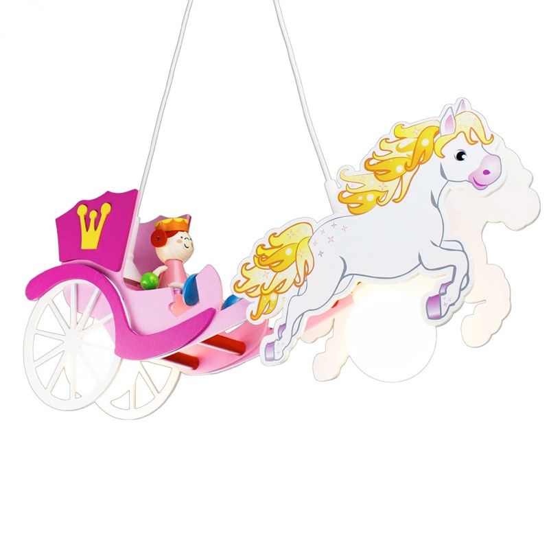 Κρεμαστό Φωτιστικό Οροφής με Πριγκίπισσα σε Άμαξα με Μονόκερο Ροζ FairytaleΑυτό το κρεμαστό φωτιστικό οροφής δημιουργεί υπέροχο φωτισμό. Είναι κατασκευασμένο από ξύλο.Κατασκευάζεται με αγάπη στη Γερμανία. Επιπλέον πληροφορίες:Βάρος: 0,5 kg Διαστάσεις: 44 x 18 x 12 cm Ανάρτηση 0.75 m Χρώμα ροζ Τάση: 230 V Λαμπτήρες: 2 x E27 Μέγιστη ισχύς: 40 watt
