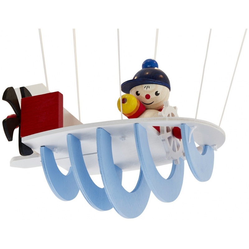 Κρεμαστό Φωτιστικό Οροφής Αερόπλοιο Ζέπελιν Γαλάζιο Technology Joe, ιδανικό για μικρούς πιλότους! Είναι κατασκευασμένο από ξύλο. Ο πιλότος Joe είναι πάντα εκεί, έχει υπό έλεγχο τα χειριστήρια του αερόπλοιου και παρακολουθεί όλες τις περιπέτειες από ψηλά. Ο μικρός πιλότος είναι ζωγραφισμένος στο χέρι και φτιαγμένος με μεγάλη προσοχή στη λεπτομέρεια.Διαθέτει 4 λαμπτήρες E14, δεν συμπεριλαμβάνονται, και 20 ενσωματωμένα LED.Κατασκευάζεται με αγάπη στη Γερμανία.Διαθέτει λειτουργία νυχτερινού φωτός:ΠΑΤΗΜΑ ΔΙΑΚΟΠΤΗ 1 ΦΟΡΑ: Κύριο Φως & Νυχτερινό Φως αναμμένα ΠΑΤΗΜΑ ΔΙΑΚΟΠΤΗ 2 ΦΟΡΕΣ: Κύριο Φως αναμμένο & Νυχτερινό Φως σβηστό ΠΑΤΗΜΑ ΔΙΑΚΟΠΤΗ 3 ΦΟΡΕΣ: Κύριο Φως σβηστό & Νυχτερινό Φως αναμμένο ΠΑΤΗΜΑ ΔΙΑΚΟΠΤΗ 4 ΦΟΡΕΣ: Κύριο Φως σβηστό & Νυχτερινό Φως σβηστό