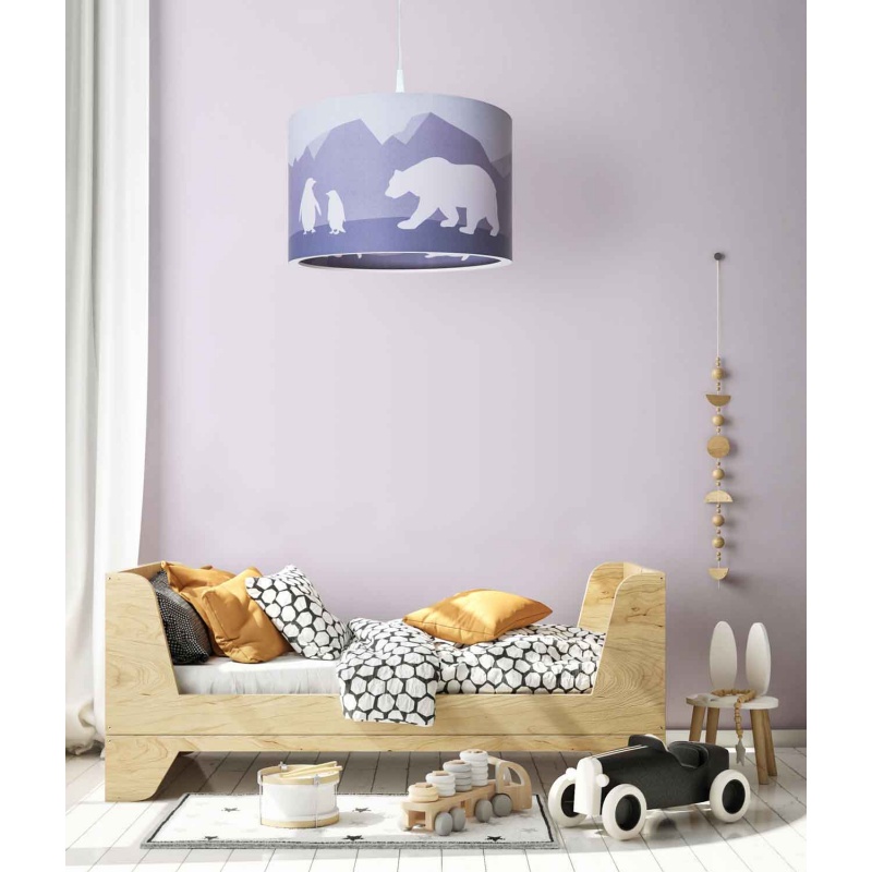 Κρεμαστό Φωτιστικό Οροφής Ανταρκτική Μωβ Antarktis ScandiΤο θέμα της Ανταρκτικής μας δείχνει τους τυπικούς κατοίκους της στο μεγαλείο τους όπως αρκούδες και πιγκουίνους. Με το διακριτικό χρώμα του, αυτό το φωτιστικό ταιριάζει τέλεια σε κάθε παιδικό δωμάτιο και φέρνει τη φύση πιο κοντά στα παιδιά. Τα παιδικά φωτιστικά της σειράς Scandi χαρακτηρίζονται από το μοντέρνο σκανδιναβικό στυλ και έτσι εξασφαλίζουν μοναδικά παιδικά και βρεφικά δωμάτια.Κατασκευάζεται με αγάπη στη Γερμανία. Το φωτιστικό είναι βαμμένο με βαφή χωρίς διαλύτες, με βάση το νερό.Χειροποίητο-Κατασκευάζεται με αγάπη στη Γερμανία.