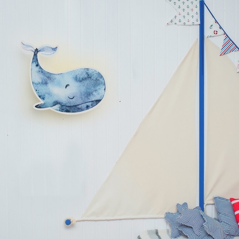 Φωτιστικό Τοίχου Μπλε Φάλαινα Paul Pottwal, ιδανικό για παιδικό ή βρεφικό δωμάτιο! Είναι κατασκευασμένο από ξύλο. Διαθέτει καλώδιο 2μ με διακόπτη.Χειροποίητο - Κατασκευάζεται με αγάπη στη Γερμανία.