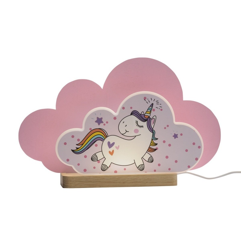 Πορτατίφ Σύννεφο με τον Μονόκερο Babsy Unicorn FairytaleΧειροποίητο-Κατασκευασμένο στη Γερμανία. Διαθέτει καλώδιο μήκους 2μ με διακόπτη. Επιπλέον πληροφορίες:Βάρος: 1 kg Διαστάσεις: 20 x 35 x 7 cm Χρώμα ροζ Υλικό: ξύλο, κόντρα πλακέ, ακρυλικό Λαμπτήρες: Ενσωματωμένο LED 3 watt