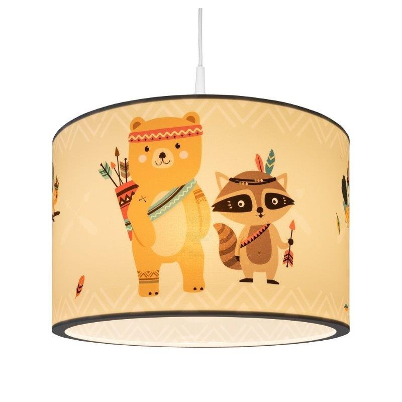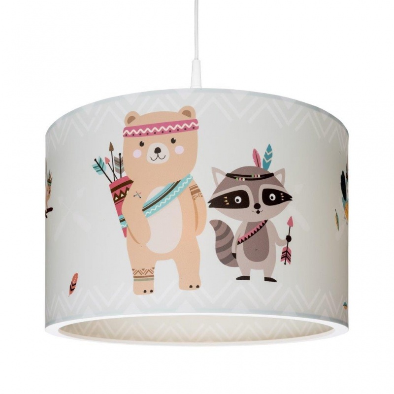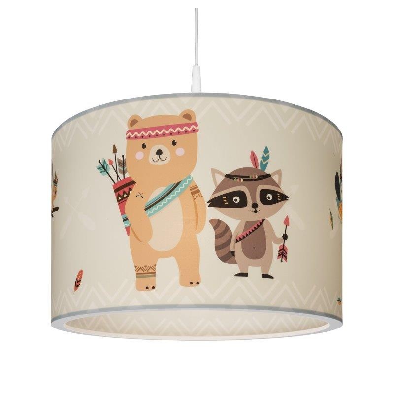 Κρεμαστό Φωτιστικό Οροφής Little IndiansΤο κρεμαστό φωτιστικό "Little Indians" δημιουργεί υπέροχο φωτισμό. Το μικρό ρακούν και το αρκουδάκι ζούνε μαζί με τους άλλους Ινδιάνους φίλους τους σε μια φυλή, με στόχο να φωτίσει τα δωμάτια των παιδιών. Με το χαριτωμένο μοτίβο και τα χρώματα που ταιριάζουν, το φωτιστικό γίνεται πραγματικά εντυπωσιακό.Χειροποίητο-Κατασκευάζεται με αγάπη στη Γερμανία.