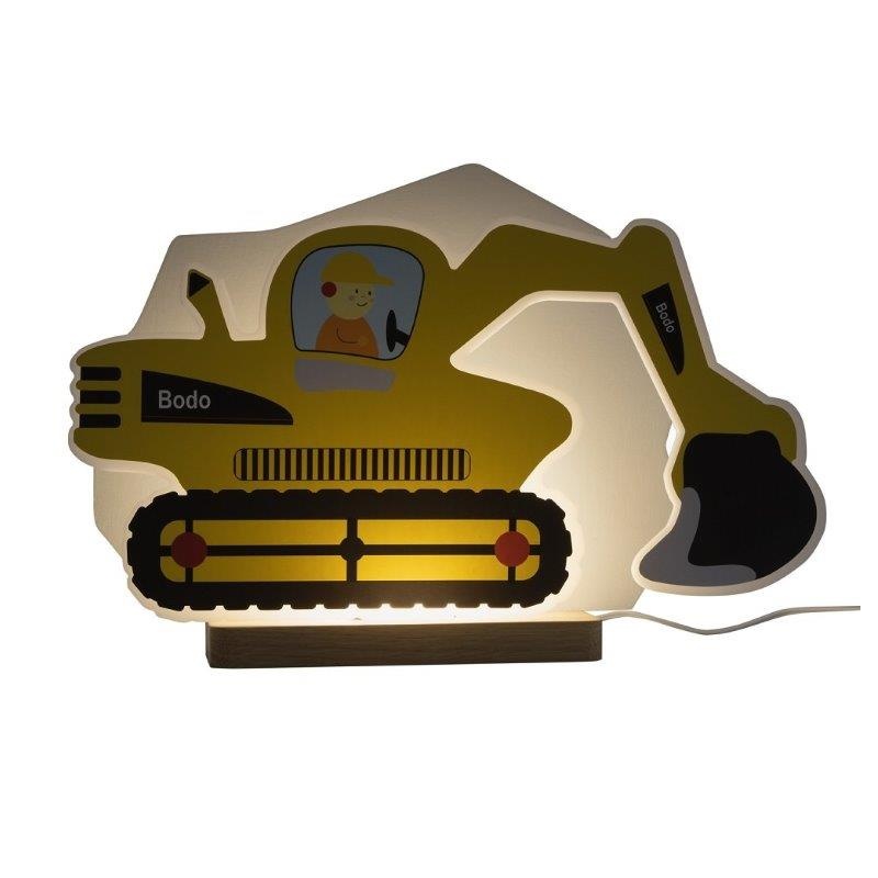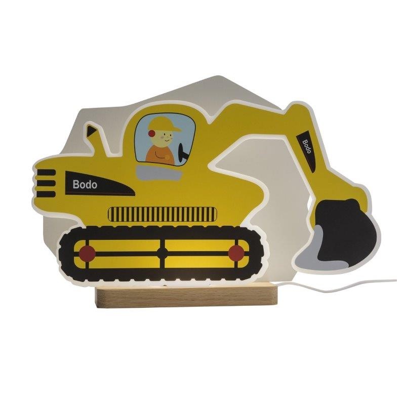 Πύραυλος Εκσκαφέας Bodo σε κίτρινο, ιδανικό για παιδικό ή βρεφικό δωμάτιο! Διαθέτει καλώδιο μήκους 2μ με διακόπτη.Είναι το τέλειο δώρο για μικρούς οικοδόμους που ενδιαφέρονται για οχήματα κατασκευής. Κάθε παιδικό δωμάτιο γίνεται χώρος δημιουργικού παιχνιδιού. Κατασκευασμένο από φυσικό ξύλο και βαμμένο με βαφή χωρίς διαλύτες, με βάση το νερό.Χειροποίητο-Κατασκευάζεται με αγάπη στη Γερμανία.