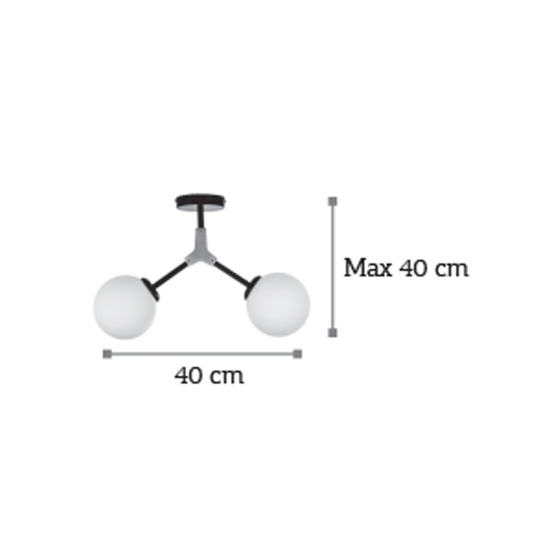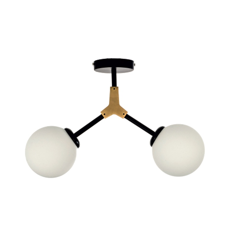 Δίφωτο μεταλλικό φωτιστικό σε μαύρο και χρυσαφί χρώμα και λευκή οπαλίνα.